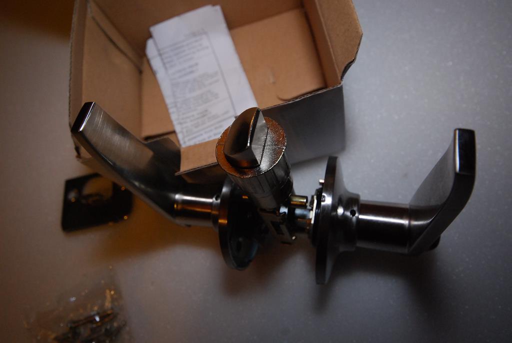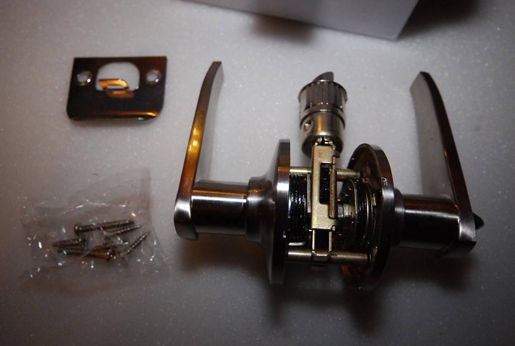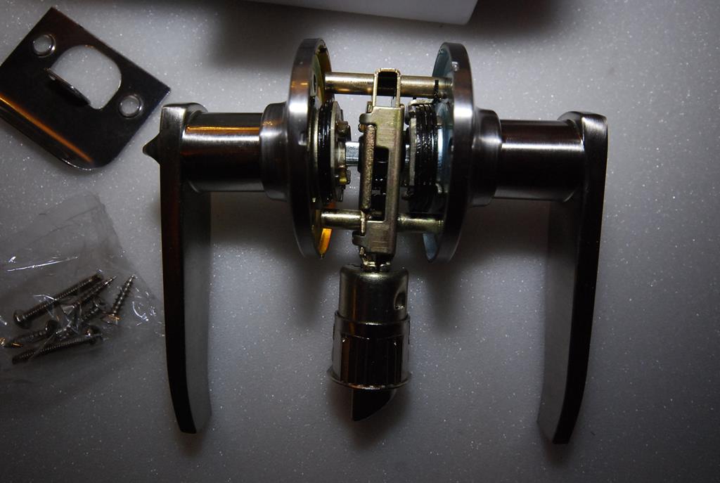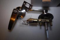 Nr 17 Klamka z szyldem, językiem i zamkiem satynowa (Willerby) , komplet 2 rączki